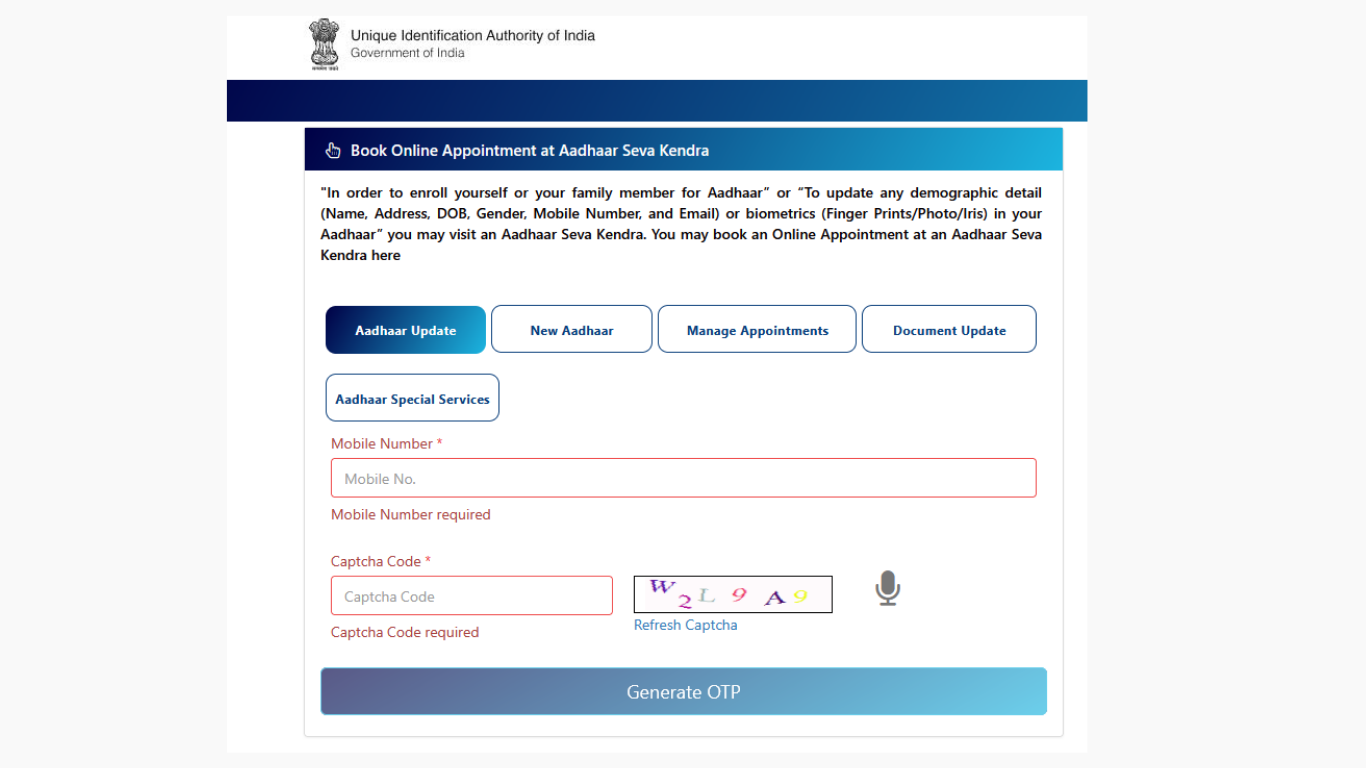 Link or update your mobile number with Aadhaar for seamless authentication.